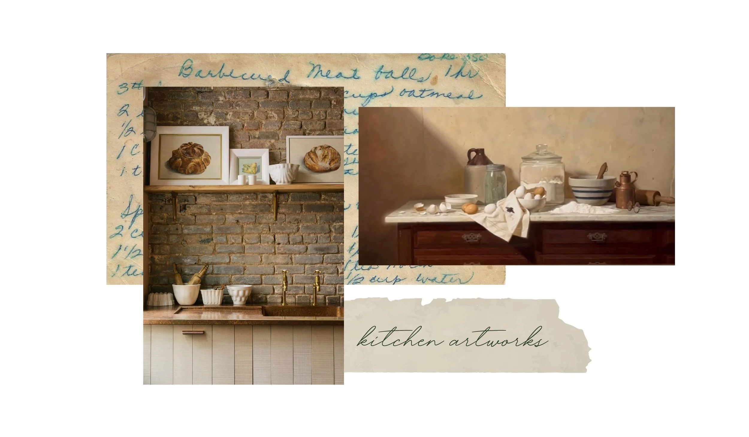 I’m inspired to create food-related artwork for kitchens. Food has a nostalgic quality and most often is eaten with people that mean a lot to each other. Creating art that is centered around that feeling is my absolute dream. I have a few projects that I’d like to tackle next that fit into this category. The paintings below really capture the still-life, full detail I’d be striving for in my kitchen-inspired series.
